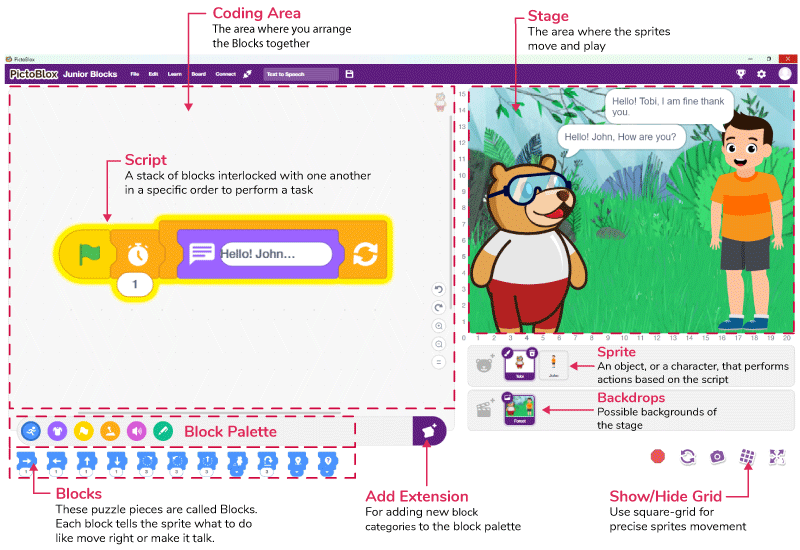 Junior Blocks has the following basic elements: