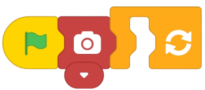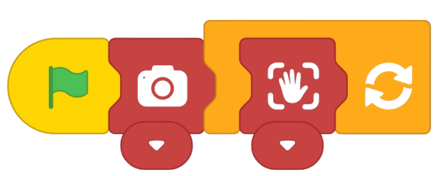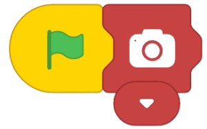 - Now, add a Camera Switch block from the Human Body Detection extension to turn on the camera on stage. Say cheese!