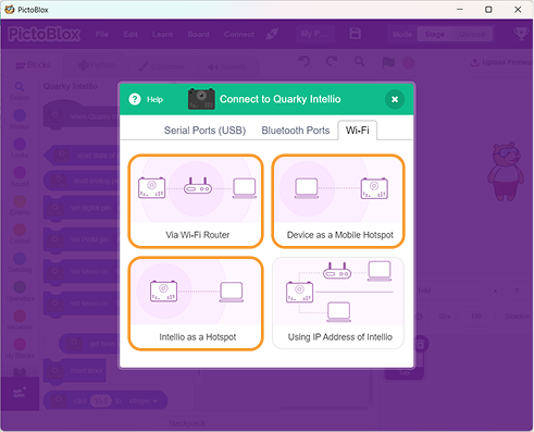 Learn how to troubleshoot connection issues with Quarky Intellio. This guide helps you resolve common problems related to PictoBlox setup, firmware, and connection methods, including Wi-Fi, hotspot, and IP address.