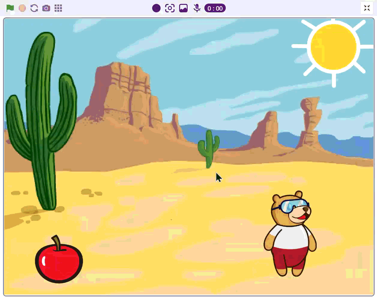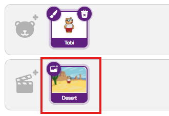 1. Create the first scene; click the backdrop to add the desert backdrop.