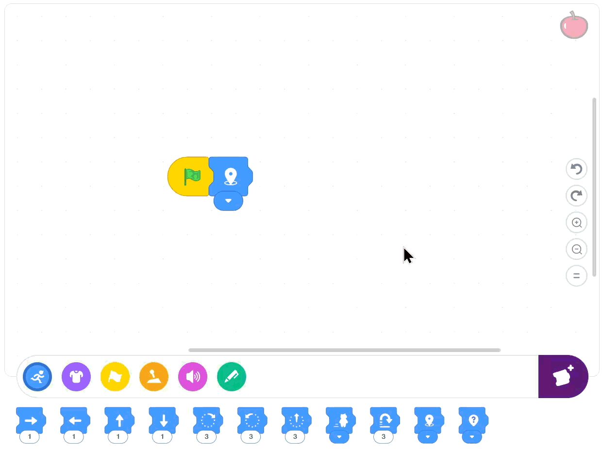 1. First the apple falls from top to bottom. Go to Events and drag the Green Flag block into your coding area.