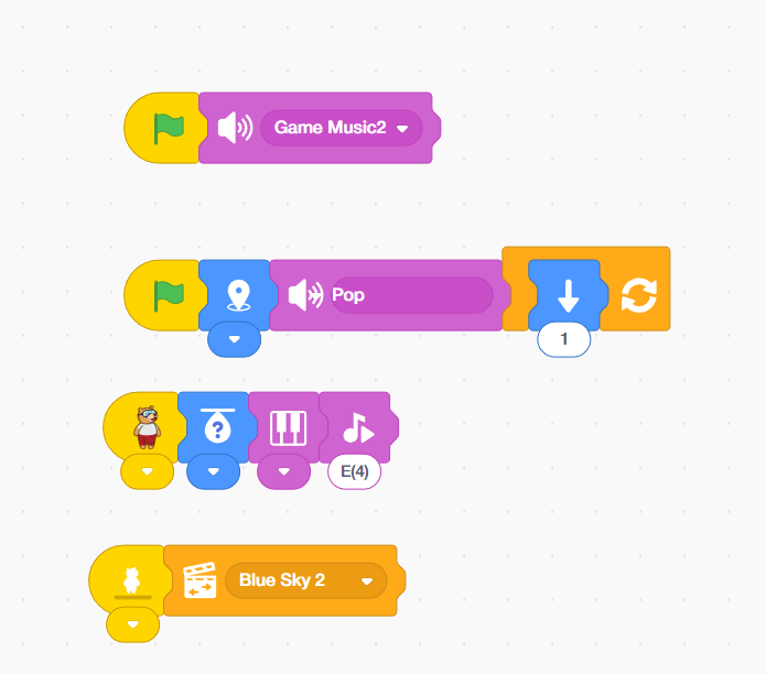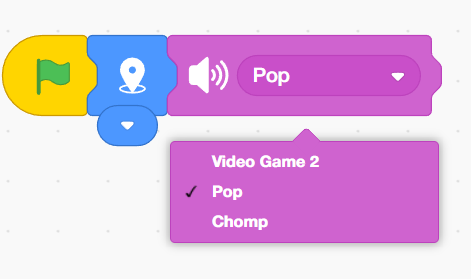 2. From the Sound palette, add the play sound block and change the sound into video game 2