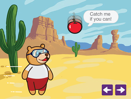 We are going to use Motion blocks to make the apple fall from the sky and Events to move Tobi back and forth. You’ll need quick reflexes, because if Tobi misses an apple and it touches the floor, the game is over!