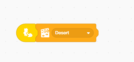 2. Add the ‘Change scene’ block from the controls palette. Ensure that the next scene is the desert.