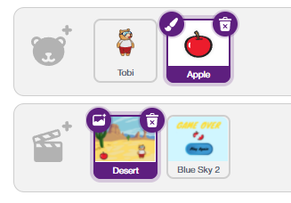 2. You already have Tobi; add the Apple sprite in the sprite library. Click the choose a sprite> use the search to find the Apple > select the Apple.
