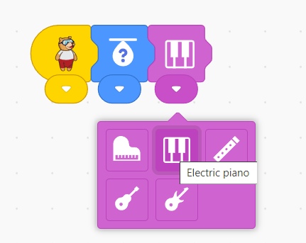 3. Add the ‘Set instrument’ block from the Sound palette. Change the instrument to an electronic piano.