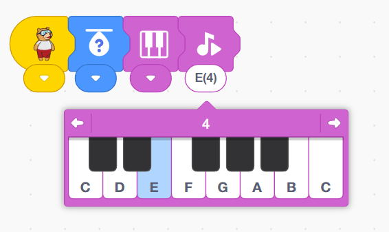 4. Add the play note block from sound block, set the play note to E(4).