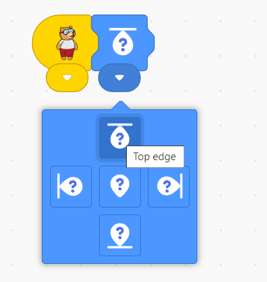 1. Add the ‘Start on touching object’ block from the events palette. Change the bottom edge in the dropdown.