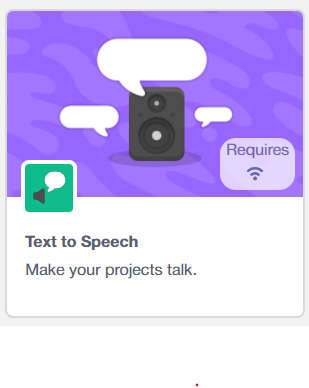 - Add a ‘speak’ block from the Text to Speech palette with the same text – this triggers the AI Text-to-Speech engine to vocalise the words.