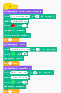 5. Now that Backdrops and Sprites are added, it’s time to write the script using Blocks and Extension Blocks.