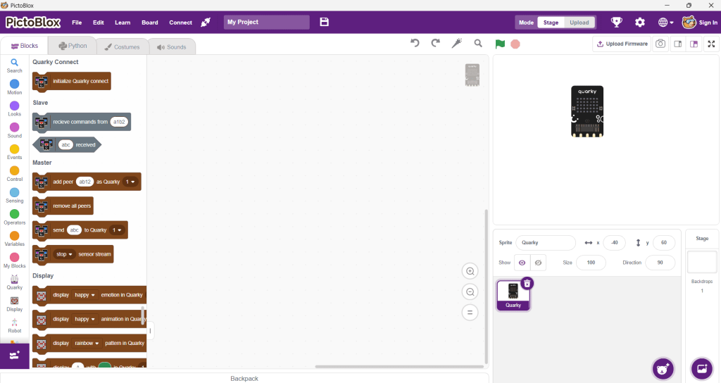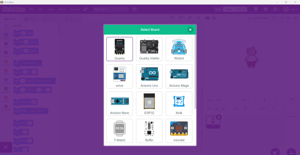 Following is the process to add Quarky Connect capability to the PictoBlox Project.