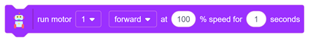 This block runs the specified motor in the forward or backward direction for the specified speed and duration. Once the time expires, the motor stops automatically.