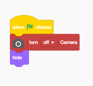 - Add a turn-on-camera block from the camera palette and set the camera off.