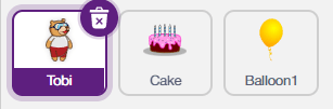 For this animation, we need three sprites: our Tobi, Cake and balloon, and make something celebration mode. Click on the Choose a Sprite button and add the three sprites one by one from the library.